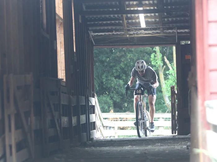 One of the course features was a detour through the old Station woolshed, requiring good balance and navigation, especially for the lone tandem cycle in the field.