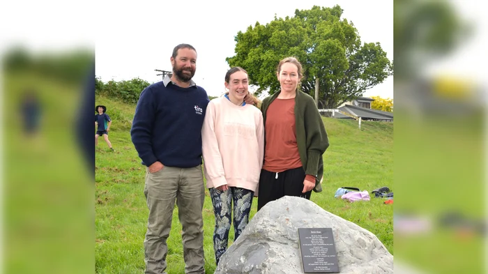 The newest addition to the Taylor River Writers’ Walk, written by Mia Lasenby was unveiled in Blenheim on Tuesday. Photo: William Woodworth