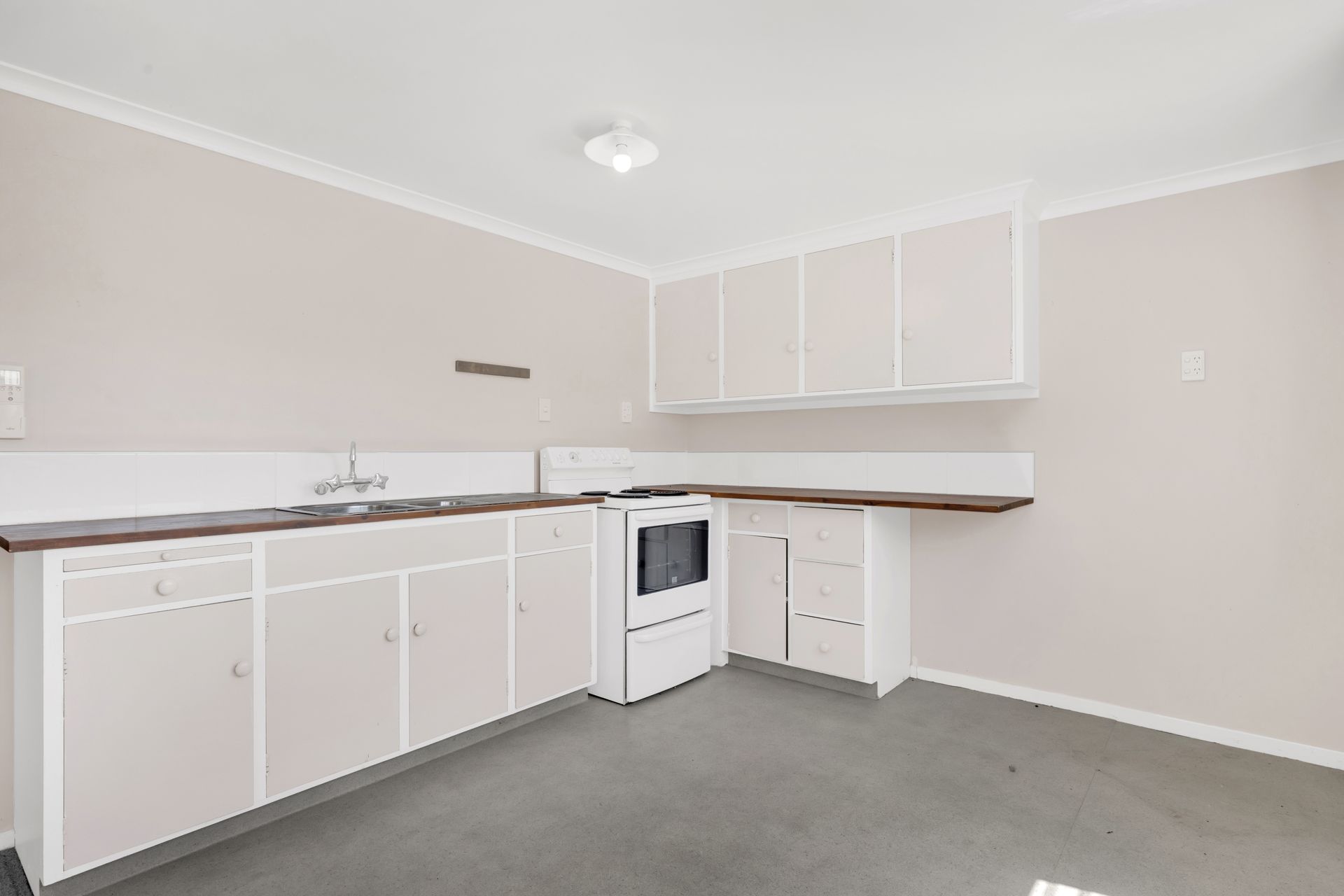 The modern kitchen offers ample cupboard and bench space, making it both practical and social — ideal for preparing fresh summer meals while staying connected to the living and dining areas.