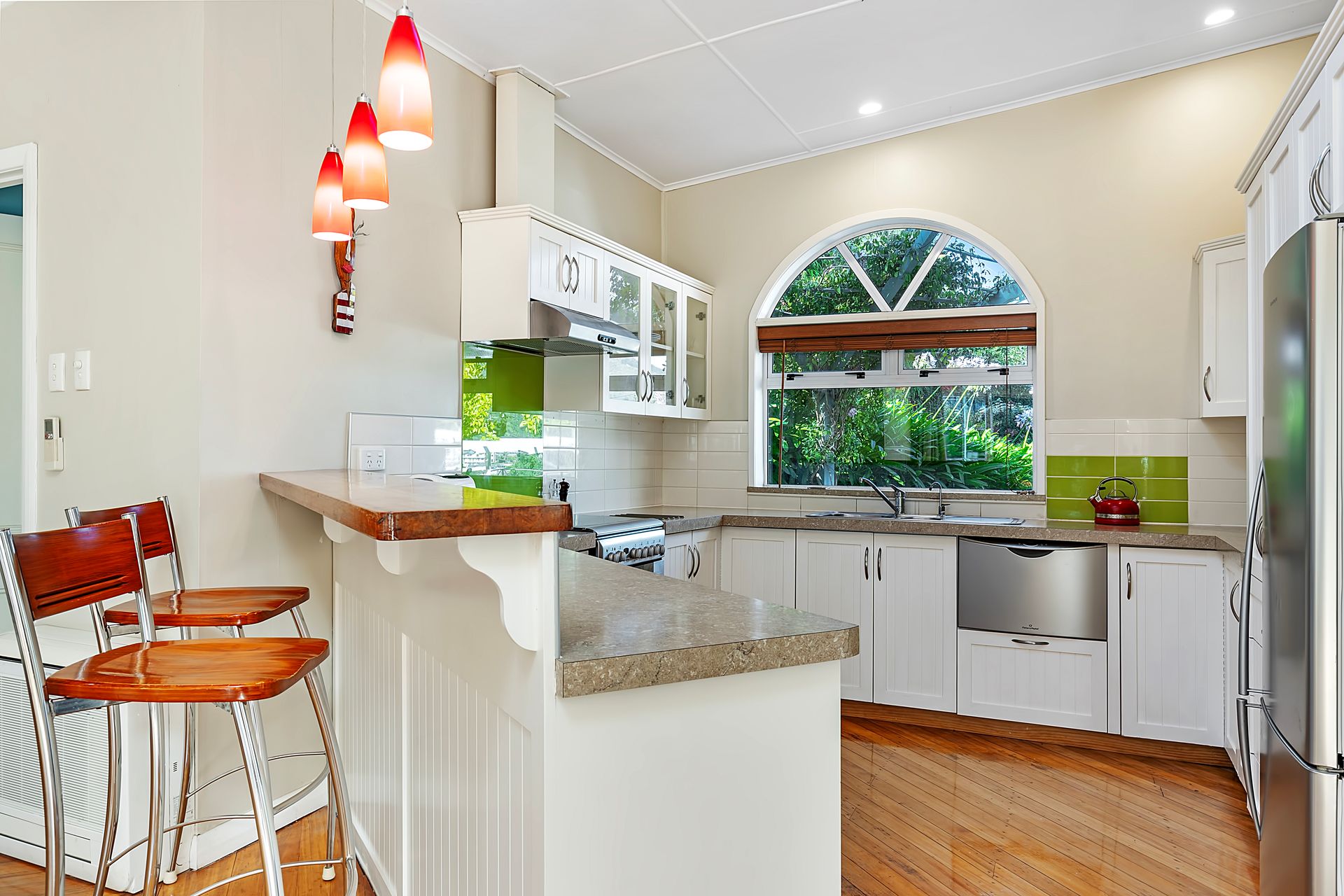 Three well-proportioned bedrooms are quietly positioned, including a primary with ensuite. A separate laundry adds convenience, while details such as feature glazing and varied ceiling heights give the home individuality. The double glazed windows are an added bonus.